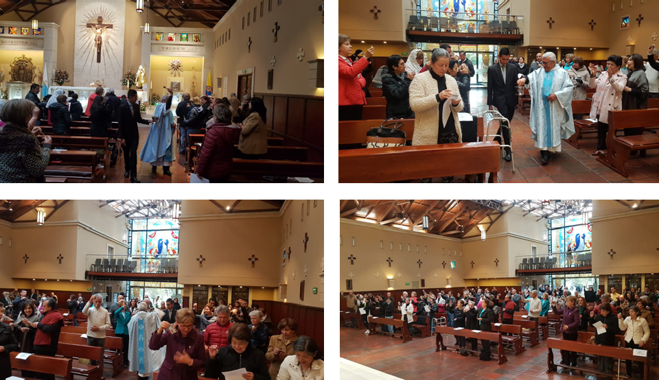 Las celebraciones del lunes 15 de julio iniciaron con el rosario de aurora a las 5:30 a.m. seguido de una misa de consagración, bendición e imposición de los escapularios de los asistentes. Igual se hizo en las eucaristías del día.