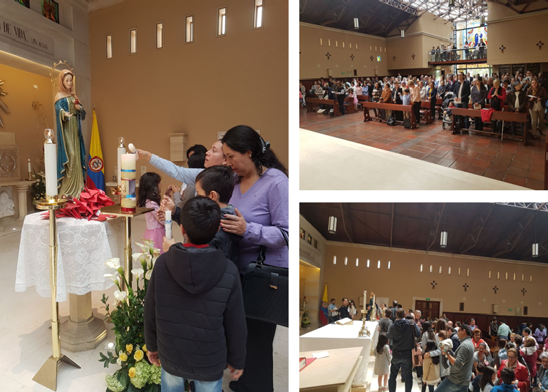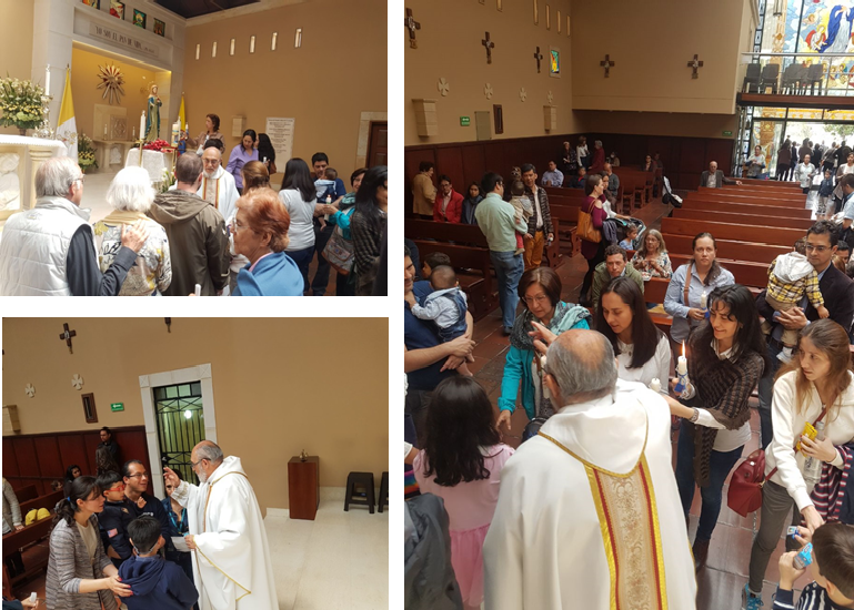 En la Santa Misa del medio día del 2 de febrero varios devotos se consagraron a la llama de amor del Corazón Inmaculado de María y se bendijeron las velas que los asistentes llevaron.
