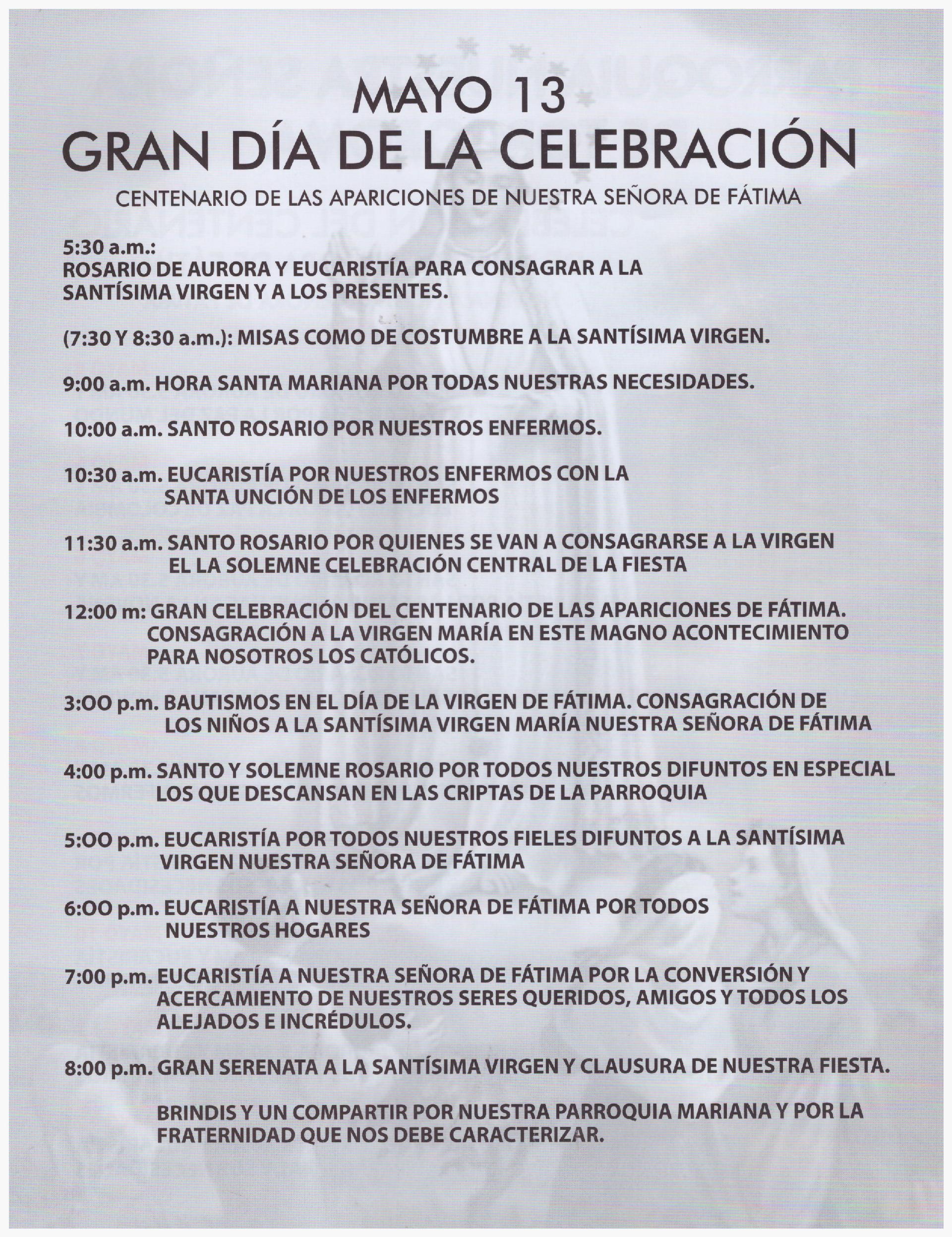 Celebración del centenario de Nuestra Señora de Fátima 1 de Mayo de 2017 ¡Celebremos en comunidad este gran acontecimientos! Conoce la programación especial que tenemos para ti. Like 0 Dislike 0 Otros artículosEl 21 de octubre la Iglesia celebra a Santa Laura Montoya18 de Octubre de 2025Se trata de la primera santa colombiana y patrona del magisterio de su país Estos son los 7 nuevos santos que canonizará el Papa León XIV18 de Octubre de 2025Este 19 de octubre, el Papa León XIV canonizará a un grupo de 7 beatos.