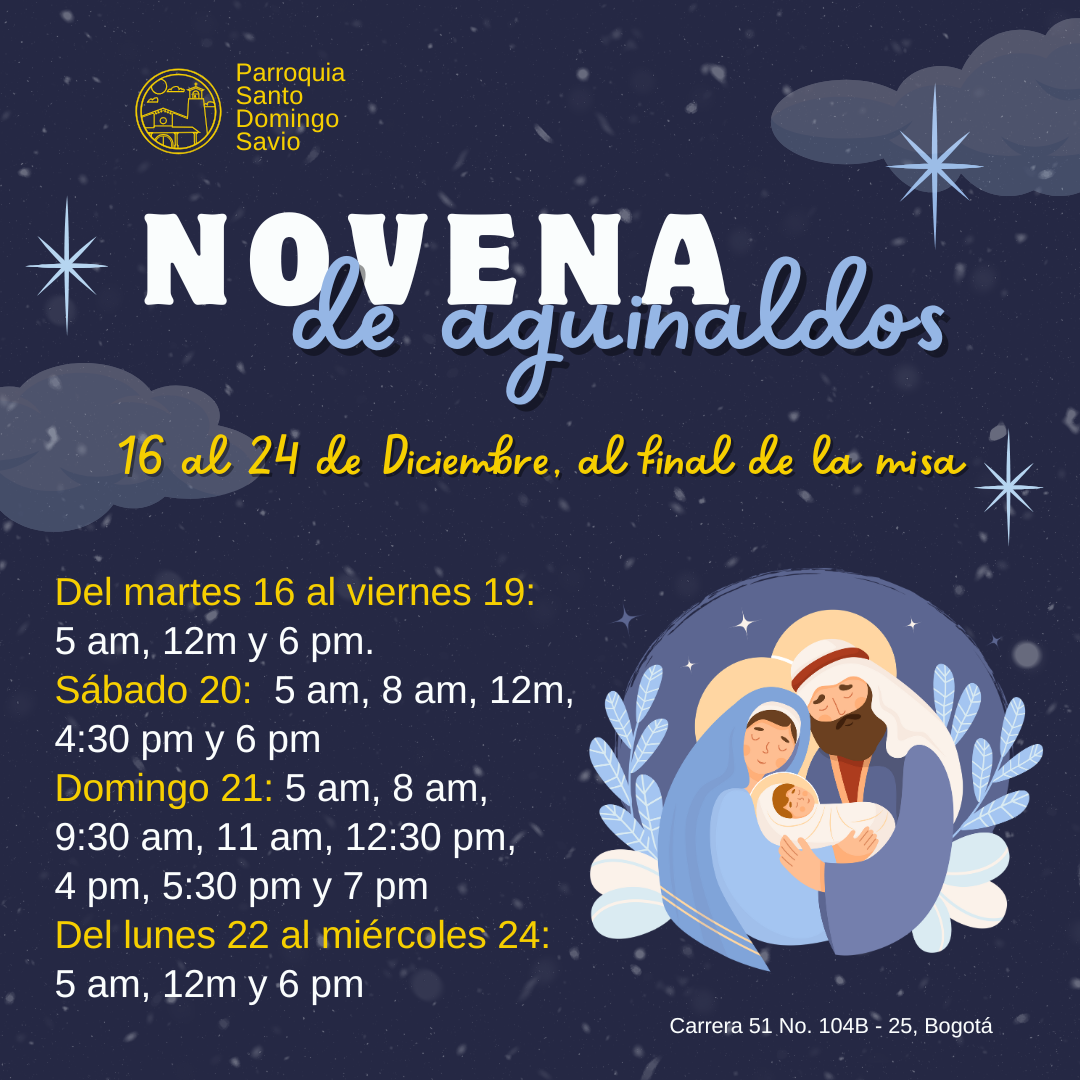 Horario de Novena de Aguinaldos y Eucaristías del 16 al 24 de diciembre
