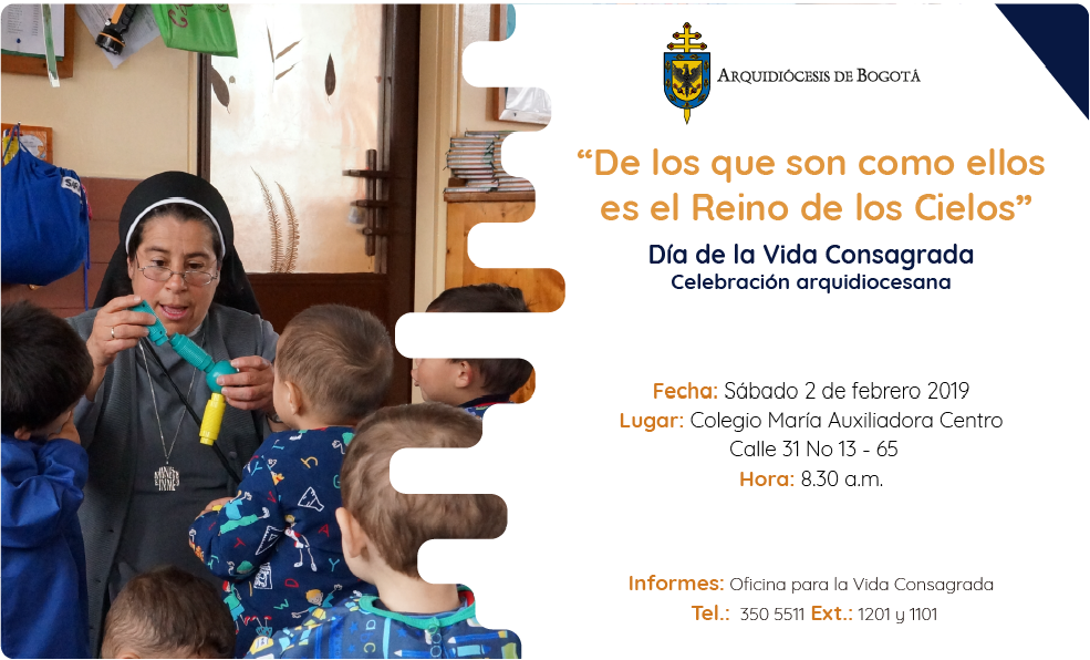 Centro de información Yo quiero Noticias Boletines Eventos Artículos Canonización Mensajes del Señor Cardenal Cartas pastorales Homilías Mensajes La voz del pastor Documentos del Vaticano NoticiasDía de la Vida Consagrada - Celebración arquidiocesana1 de Febrero de 2019La Arquidiócesis de Bogotá, desde la Coordinación de Vida Consagrada, invitan a todos los miembros de la Vida Consagrada a la Celebración Arquidiocesana que tendrá…A continuación encontrará ubicación del Colegio: Like 0 Dislike 0 Noticias relacionadas No sólo los corazones necesitan purificarse, también el canto litúrgico En la Catedral Primada Destacado El Catolicismo