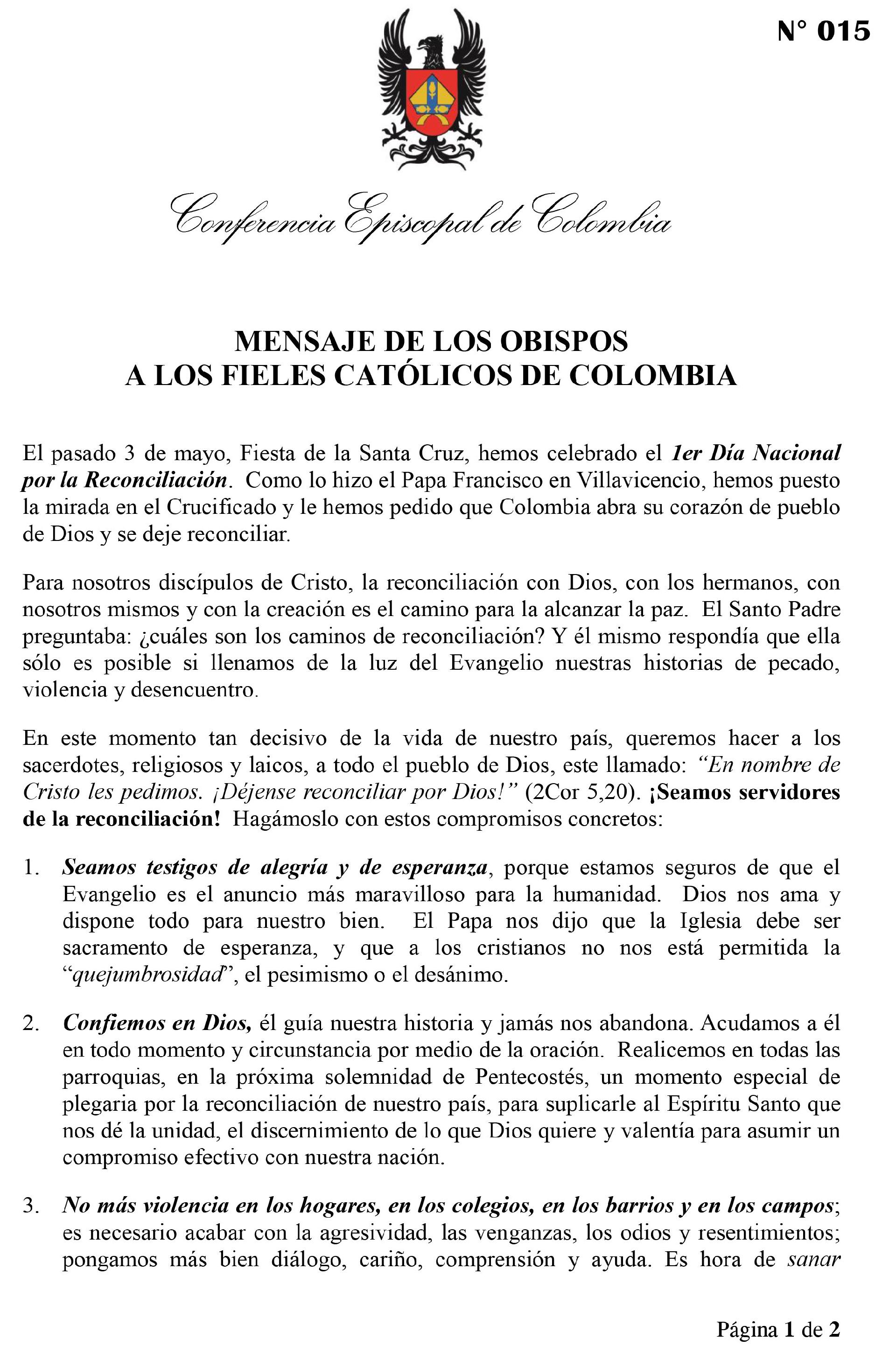 A continuación, el mensaje completo de los obispos a los fieles católicos de Colombia: